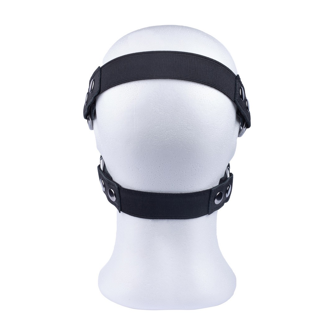 The front closure allows practical access to your partner's mouth, maintaining versatility during use. The elastic straps with pressure adjustment at the back ensure a secure and comfortable fit.