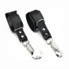 The leather suspension handcuffs have an anti-panic carabiner, are secure and adjustable.