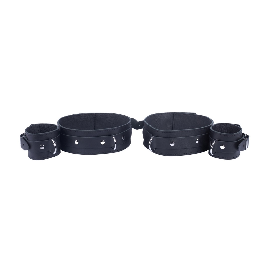 Leather cuffs designed to restrain the thighs and ankles, offering secure control and comfort.