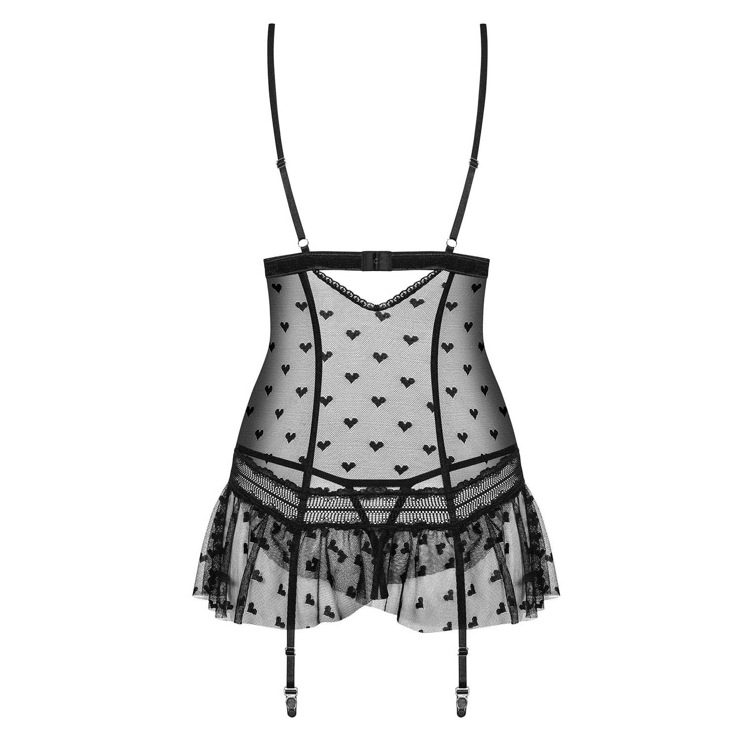 Caderas suavemente enfatizadas, un poco de elegante encaje y malla con un patrón sutil. Imagine una combinación de ligueros sexys y una tanga traviesa, ¡una mezcla realmente explosiva!