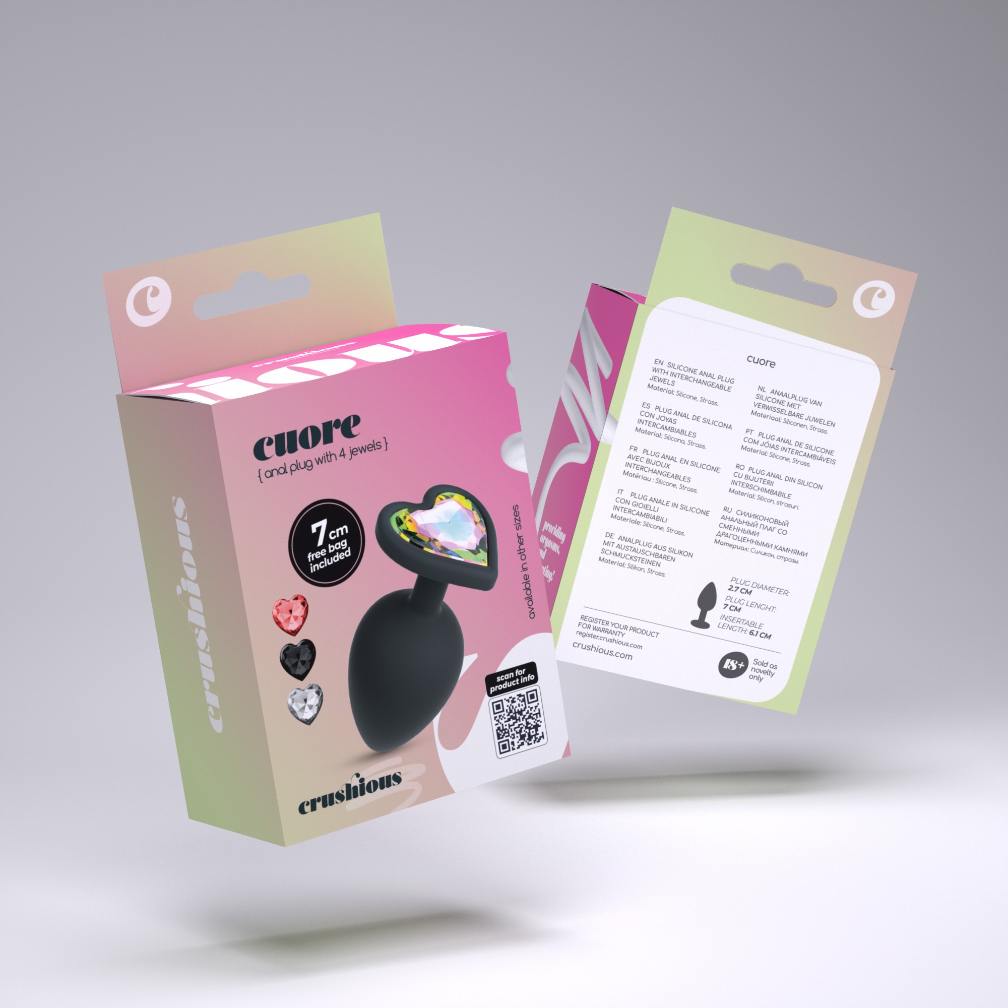 Cuore no es sólo un plug anal de silicona, viene con brillantes intercambiables que combinan con tu estado de ánimo.
