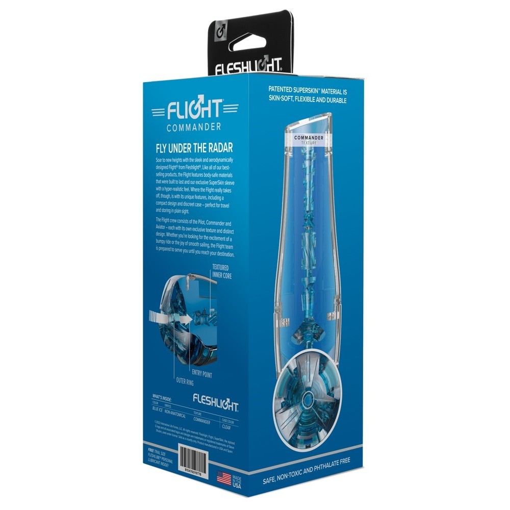 Este masturbador estimula al máximo con doble succión, gracias a sus dos puntos de entrada. La funda punteada y estriada intensifica cada sensación, haciendo que la experiencia con Flight Commander sea realmente excitante. Se puede usar con el soporte para la ducha para disfrutar sin usar las manos. Después de su uso, la manga se puede quitar fácilmente para una limpieza rápida e higiénica, y la tapa permite guardarlo de forma discreta y segura.