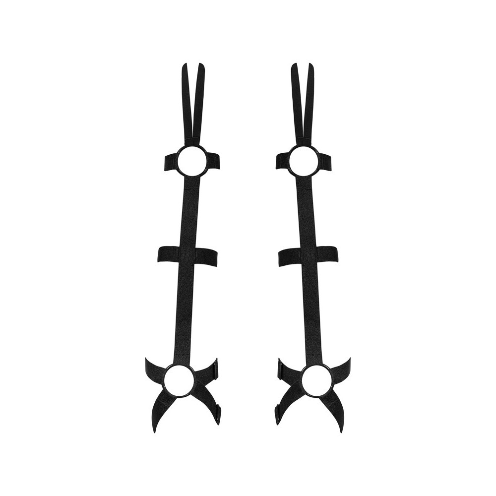 Par de mangas negras Armares de Obsessive, de estilo tiras con anillos decorativos y presillas para los dedos. Suaves y elásticas, llegan desde la mano hasta por encima del codo. Totalmente ajustables para un ajuste firme y cómodo. Un toque especial que realza cualquier conjunto.