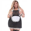 De la colección Dress Up de Magic Silk, este disfraz incluye un vestido de muñeca con tirantes tipo tirantes y detalles de encaje, tirantes cruzados y ajustables en la espalda, delantal blanco con detalles de encaje y cierre metálico en la espalda. El conjunto también incluye un tanga a juego y dos puños de encaje con lazos negros.