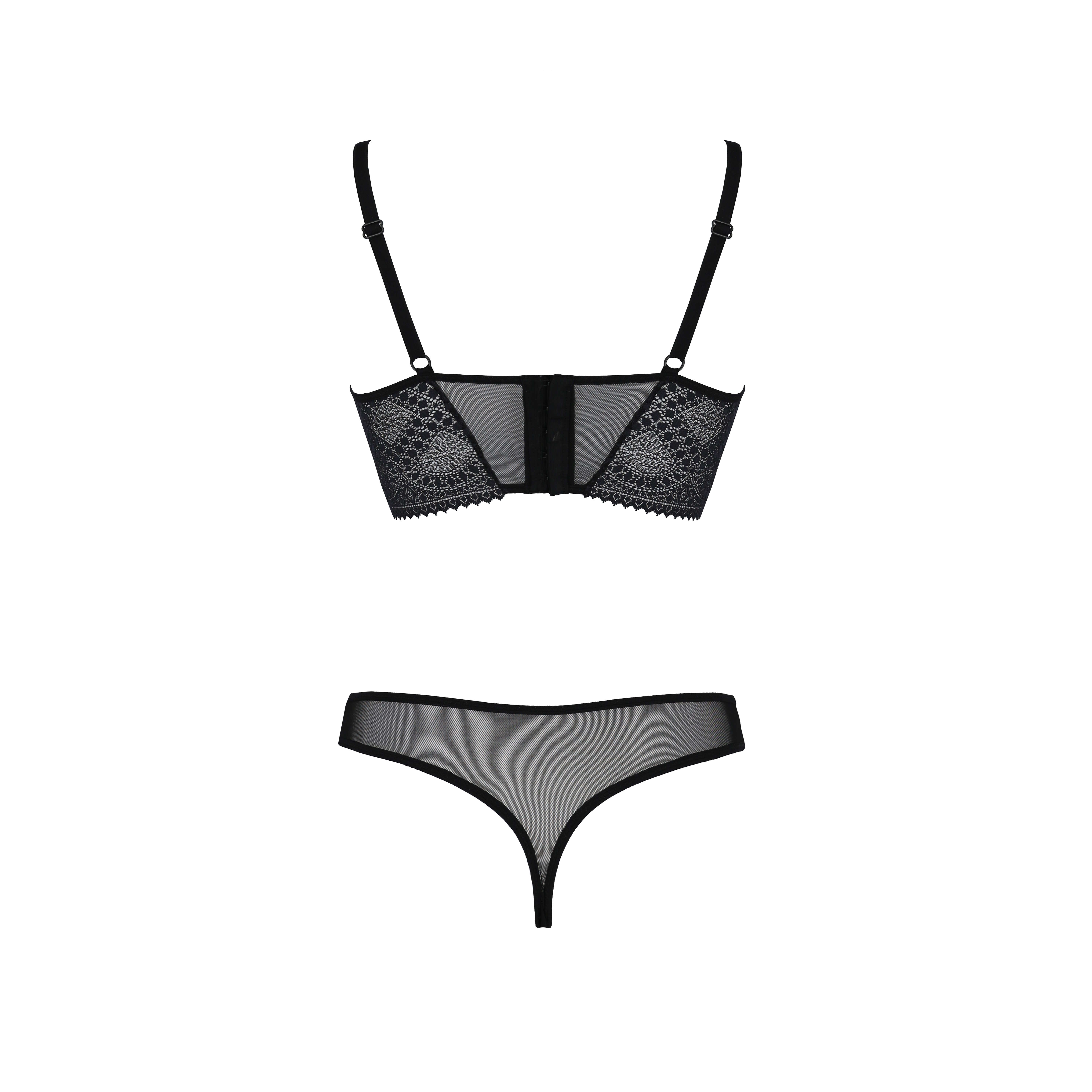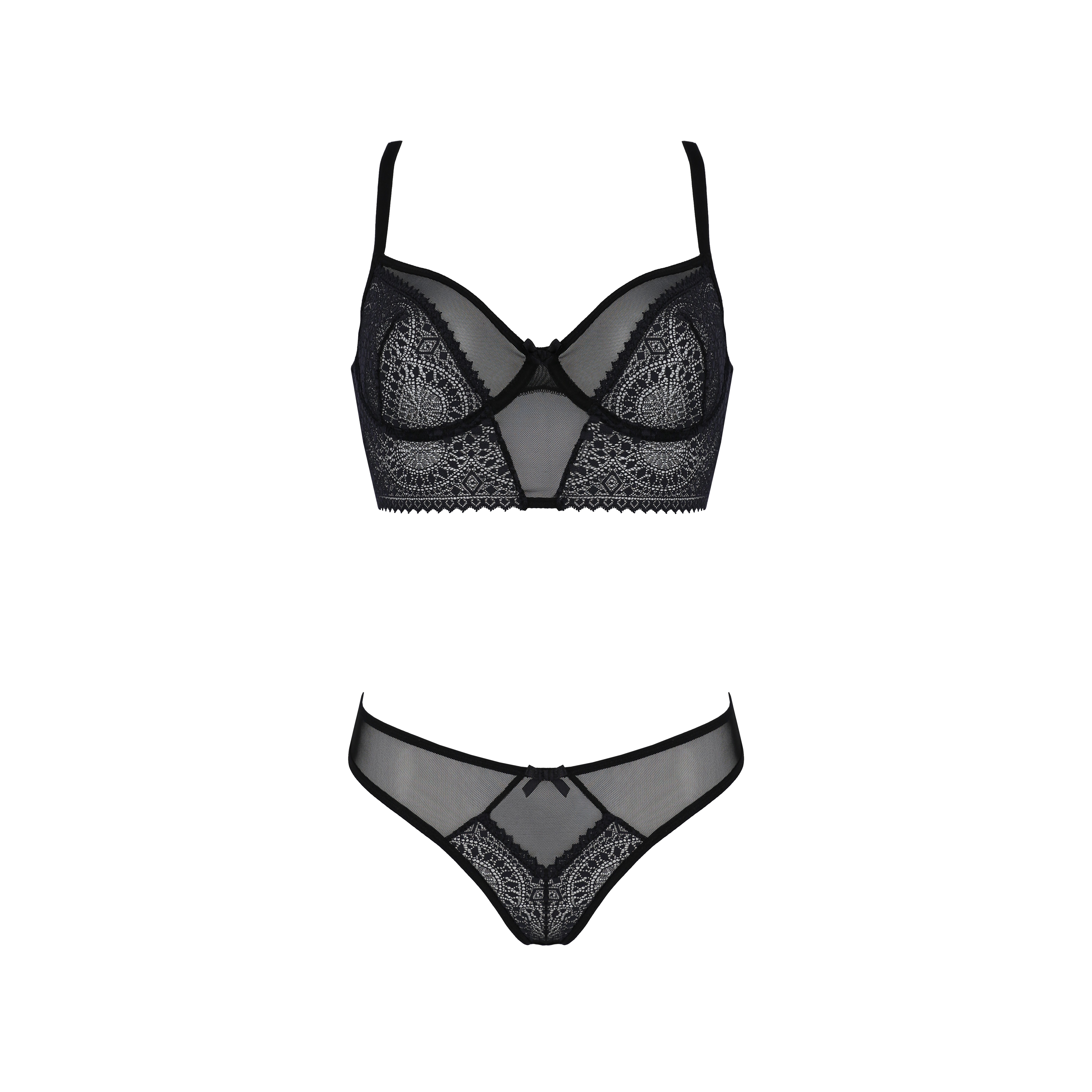 El conjunto Drosera Black combina sensualidad y sostenibilidad, al estar fabricado con materiales reciclados, tirantes ajustables y aros para una sujeción óptima.