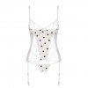 El corsé y tanga Lovelia de Passion, de tul con estampado de corazones, combina sensuales recortes y tirantes entrelazados para realzar tu feminidad. Perfecto para ocasiones especiales, este modelo combina elegancia y provocación en cada detalle.