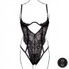 Este body de copa abierta con ribetes y adornos de encaje, en color negro, ofrece un ajuste sexy y cómodo.
