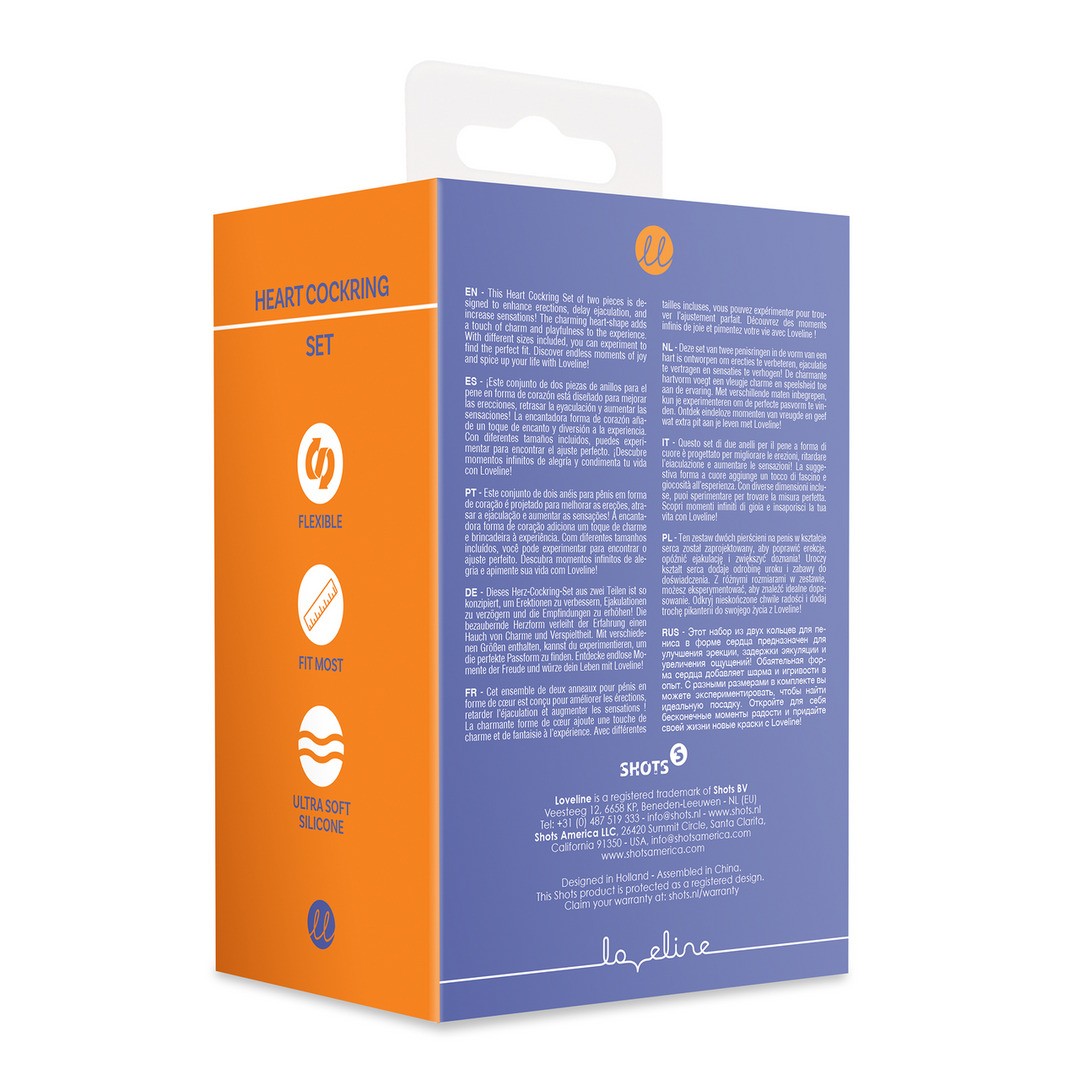 El Cockring Corazón es un conjunto de dos anillos para el pene diseñados para mejorar la erección, retrasar la eyaculación e intensificar las sensaciones durante los momentos íntimos.