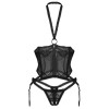 Las elegantes tiras de liguero a los lados y el cierre de gancho en la parte trasera pueden ajustarse a tu gusto. El seductor tanga sin entrepierna añade el toque final a este excitante conjunto.