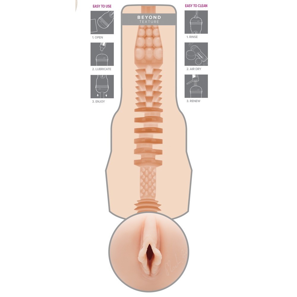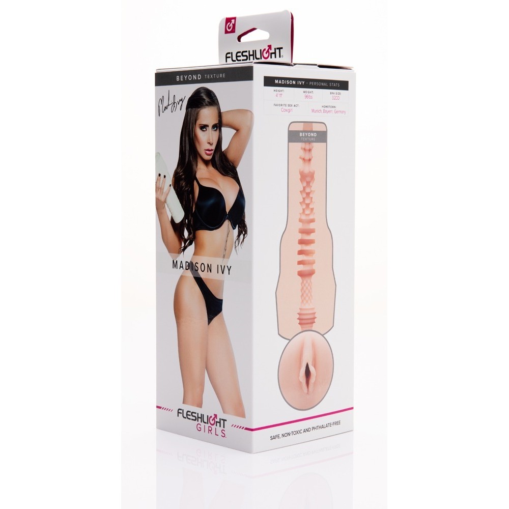Le Madison Ivy Beyond comprend une réplique réaliste du vagin de Madison Ivy, insérée dans un coffret blanc nacré de haute qualité. Parmi les autres caractéristiques, citons les lèvres artificielles et la signature de l'actrice. Le matériau Superskin du manchon offre un toucher extrêmement réaliste, similaire à la peau. À l'intérieur, une texture spéciale à picots garantit une stimulation intense et enveloppante.