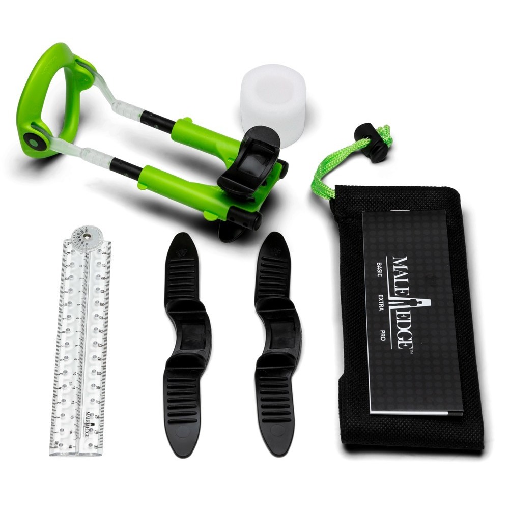 Extenseur conçu pour étirer et allonger le pénis sans causer aucune douleur. Convient aux pénis d'une longueur comprise entre 4 et 24 cm. Comprend l'accès à une vidéo d'instructions en ligne et à un forum dédié. Contient également un journal d'entraînement et une règle pour suivre et observer les résultats. Livré avec deux bandes élastiques supplémentaires et un coussin de protection pour plus de confort.
