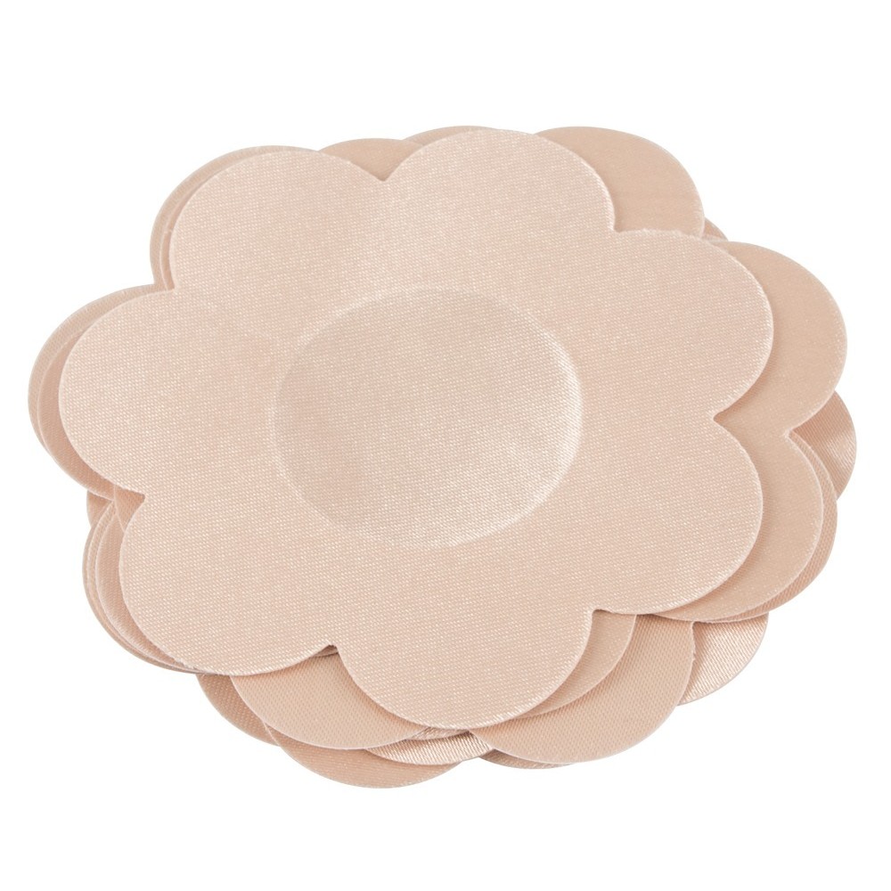 Adhésifs textiles en forme de fleur, avec revêtement adhésif en silicone doux pour la peau, idéaux pour couvrir les mamelons de manière discrète et confortable. La découpe centrale pratique garantit un plus grand confort lors de l'utilisation. Ils peuvent être utilisés sous des tissus fins, car ils ne laissent pas de marques ni de lignes visibles.