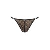 String noir Severio, de la marque Obsessive, en tissu semi-transparent avec des motifs extravagants. Doux et élastique, il offre un confort total. Taille élastique confortable, avec un petit élément métallique à l'avant et un ajustement réglable pour un ajustement parfait.