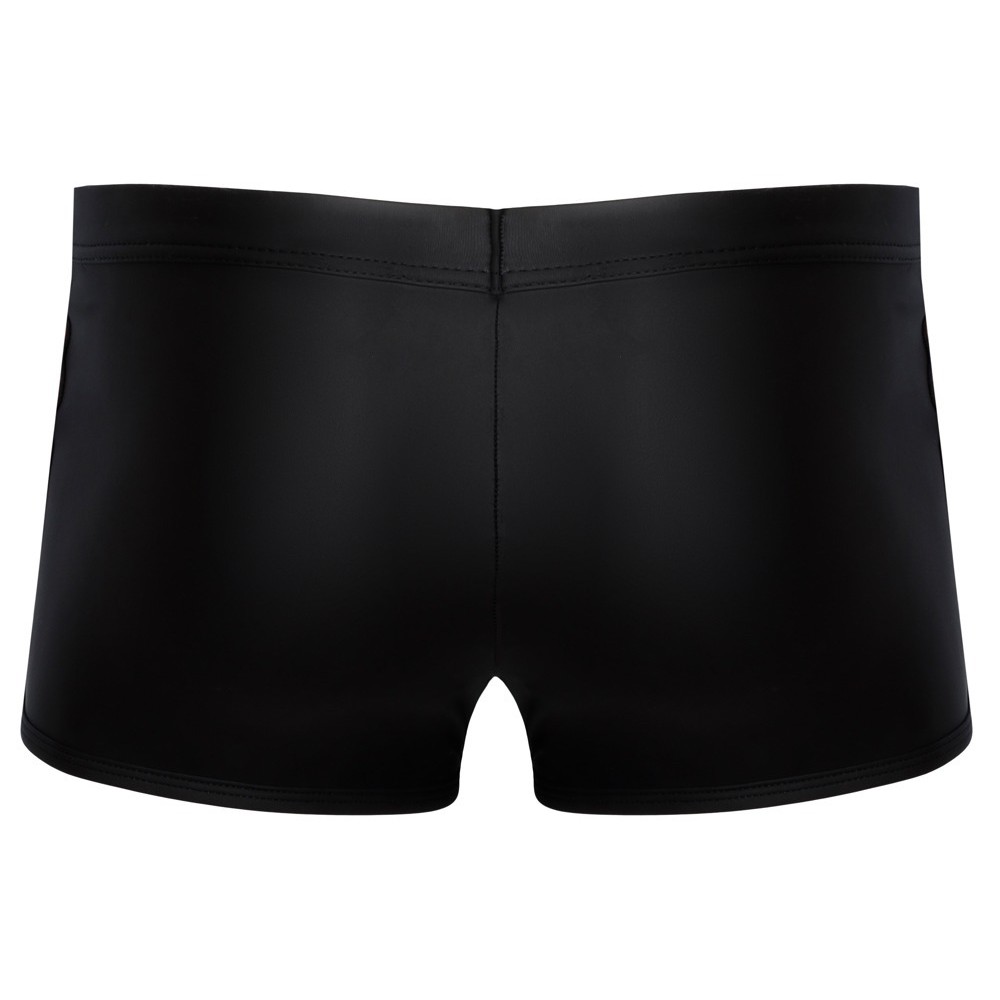 Boxers Svenjoyment en noir mat, avec des bandes rouges en caoutchouc tissé sur les côtés. Ultra-doux et extensibles pour un confort maximal, avec une ouverture frontale pour le pénis et un effet gonflant. Anneaux métalliques pour le pénis (diamètre intérieur 5 cm) fixés aux bandes élastiques par des boutons-pression, facilement interchangeables. Permet des jeux excitants avec un strap-on avec la plupart des godes à ventouse (non inclus).