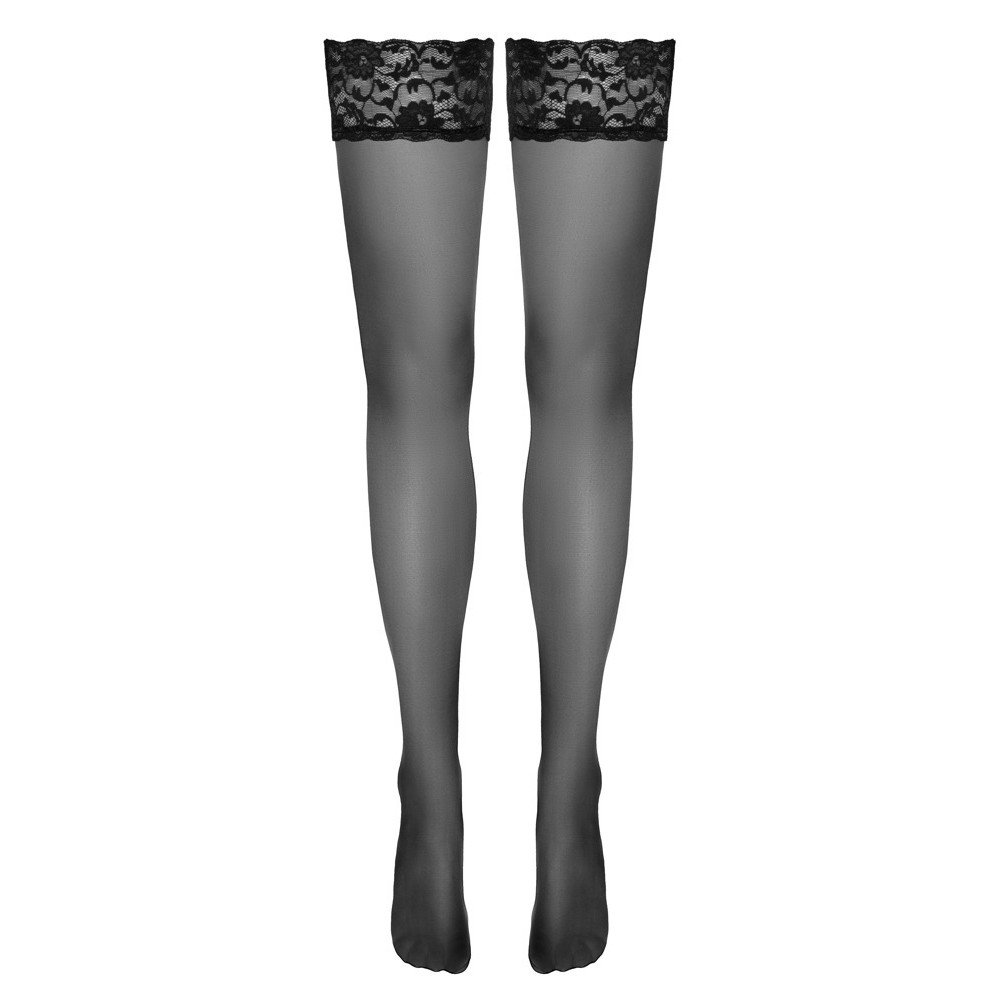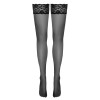 Bas noirs à jarretières de Cottelli LEGWARE avec une élégante bordure en dentelle de 9 cm de large. Intérieur renforcé de silicone pour un maintien antidérapant et une tenue parfaite. Épaisseur: 20 deniers. Certification Oeko-Tex. Les motifs de dentelle sont susceptibles d'être modifiés.