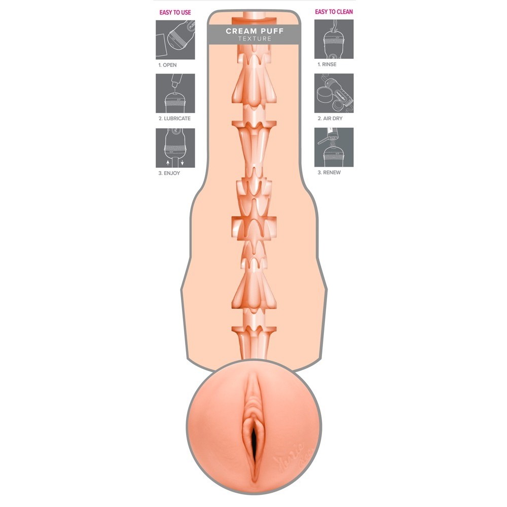 Masturbateur avec ouverture vaginale, présenté dans un élégant étui blanc nacré. Comprend une réplique réaliste des parties intimes de la star érotique Kenzie Reeves Creampuff. L'intérieur du tunnel de plaisir combine des points, des nervures et des rainures de différentes dimensions pour une stimulation intense et variée. Avec capuchon de protection et signature de la star près de l'ouverture. Texture Superskin pour une sensation extrêmement réaliste.