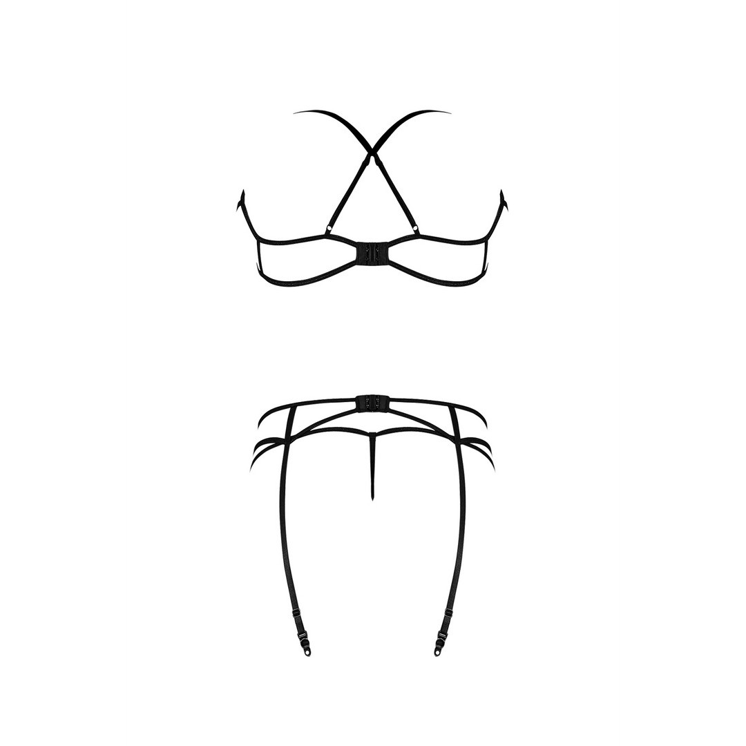Ensemble 3 pièces avec bonnets ouverts, bretelles sensuelles et détails métalliques en U.
