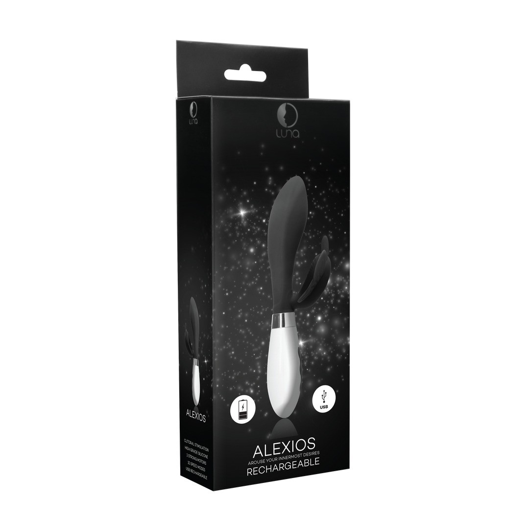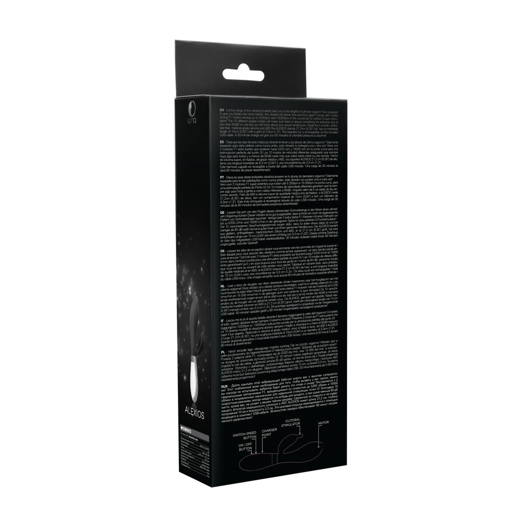 Fabriqué en silicone souple de qualité médicale, sans phtalates, et en ABS, ALEXIOS mesure 21,2 cm de haut, a une longueur insérable de 10 cm et un diamètre de 3,3 cm.
