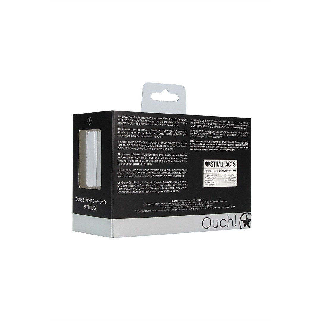 Découvrez le plaisir et l'élégance avec ce plug anal en silicone, de forme conique et doté d'une base ornée d'un magnifique diamant.