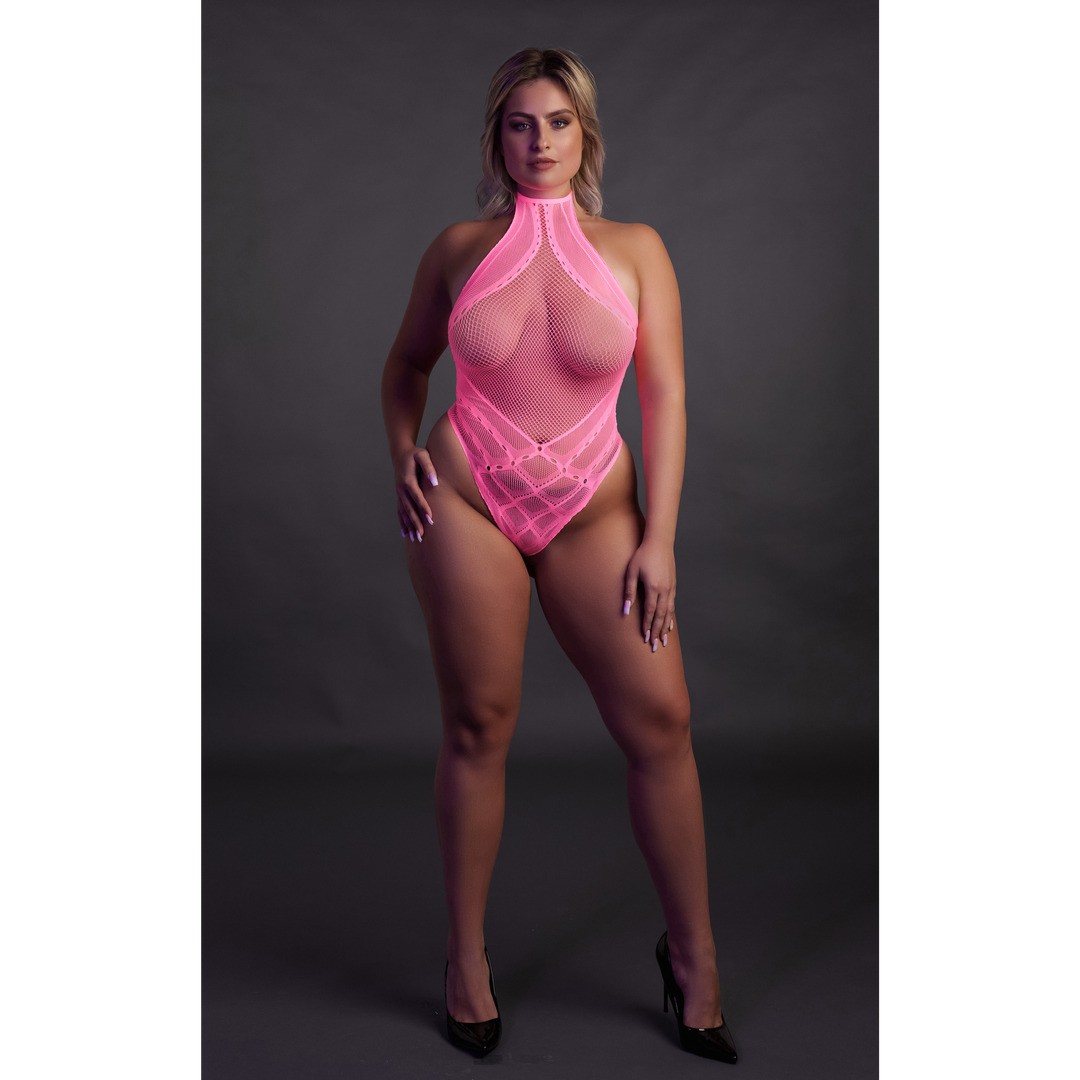 Body Neon UV avec décolleté halterneck — sensuel, élastique et conçu pour briller lorsque les lumières s'éteignent.