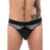 String bikini pour homme d'inspiration futuriste, en tissu élastique haute technologie et détails en maille respirante.