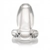 Gros plug anal creux et transparent avec une base confortable, idéal pour la visibilité et les jeux avec des liquides, compatible avec les lubrifiants à base de silicone et d'eau.
