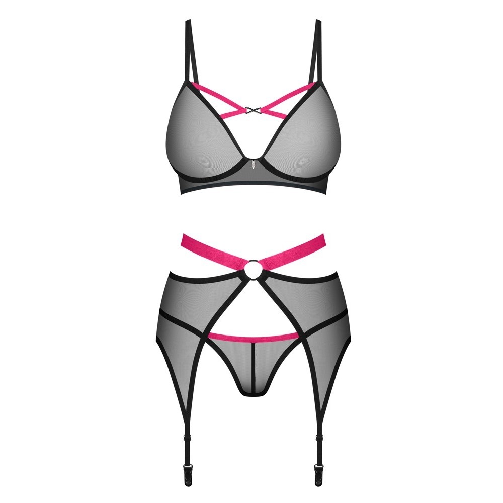 L'ensemble de 3 pièces, Novenes d'Obsessive, comprend un soutien-gorge sans fil, un porte-jarretelles et un string.