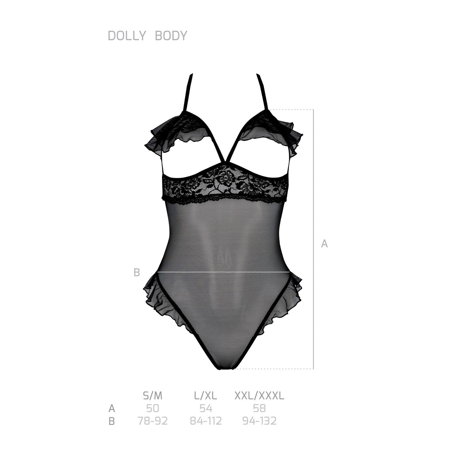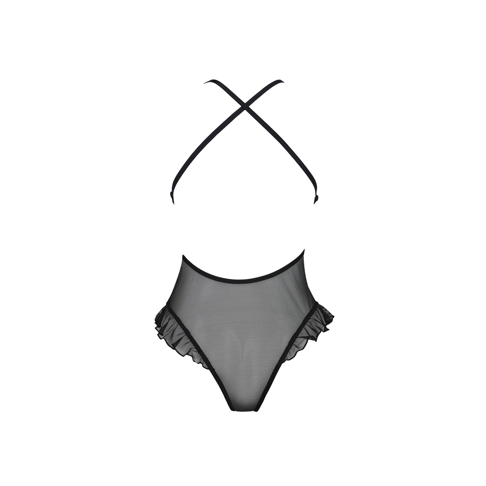 Body sensuel en tulle extensible avec détails de dentelle et volants qui soulignent les courbes de la femme de manière sophistiquée.