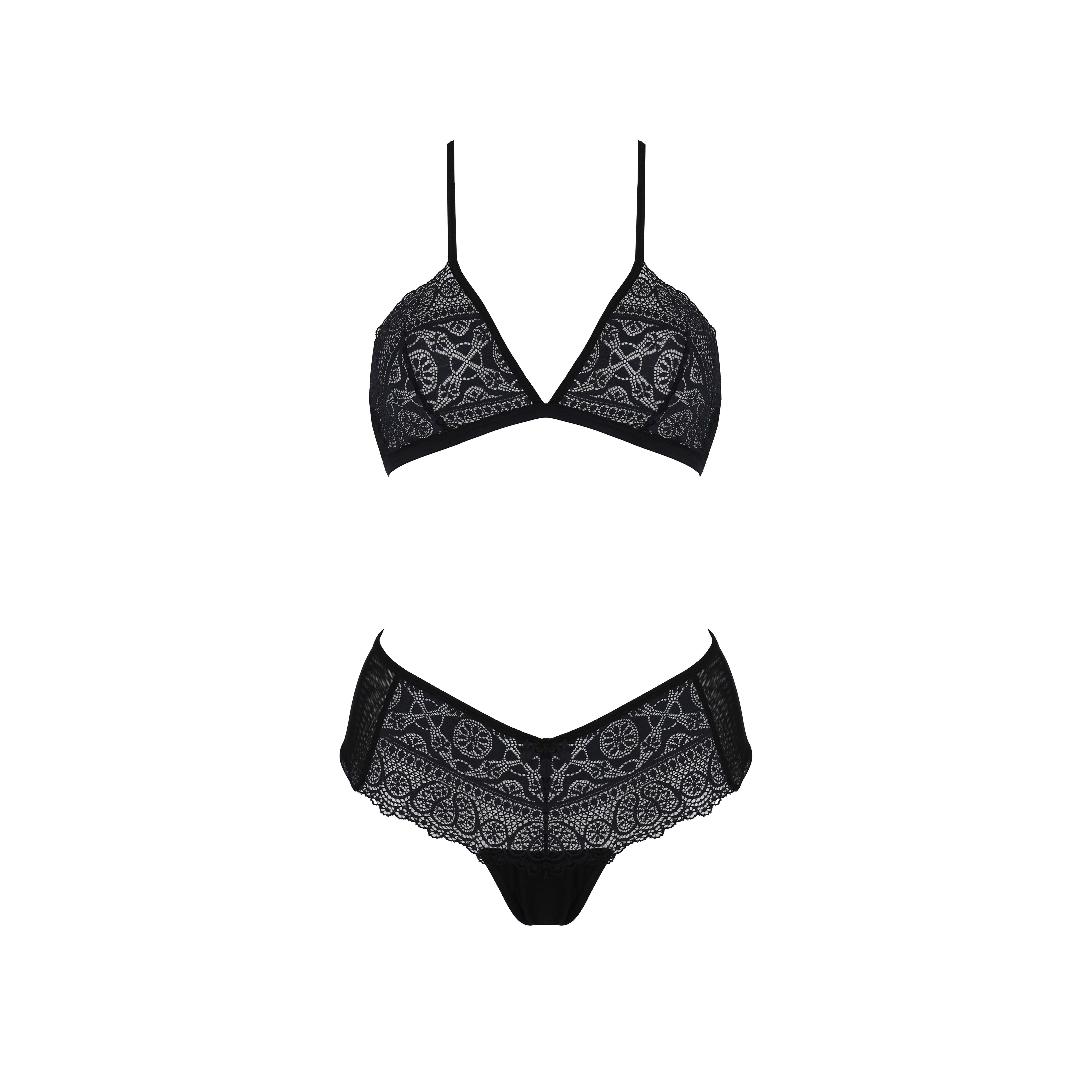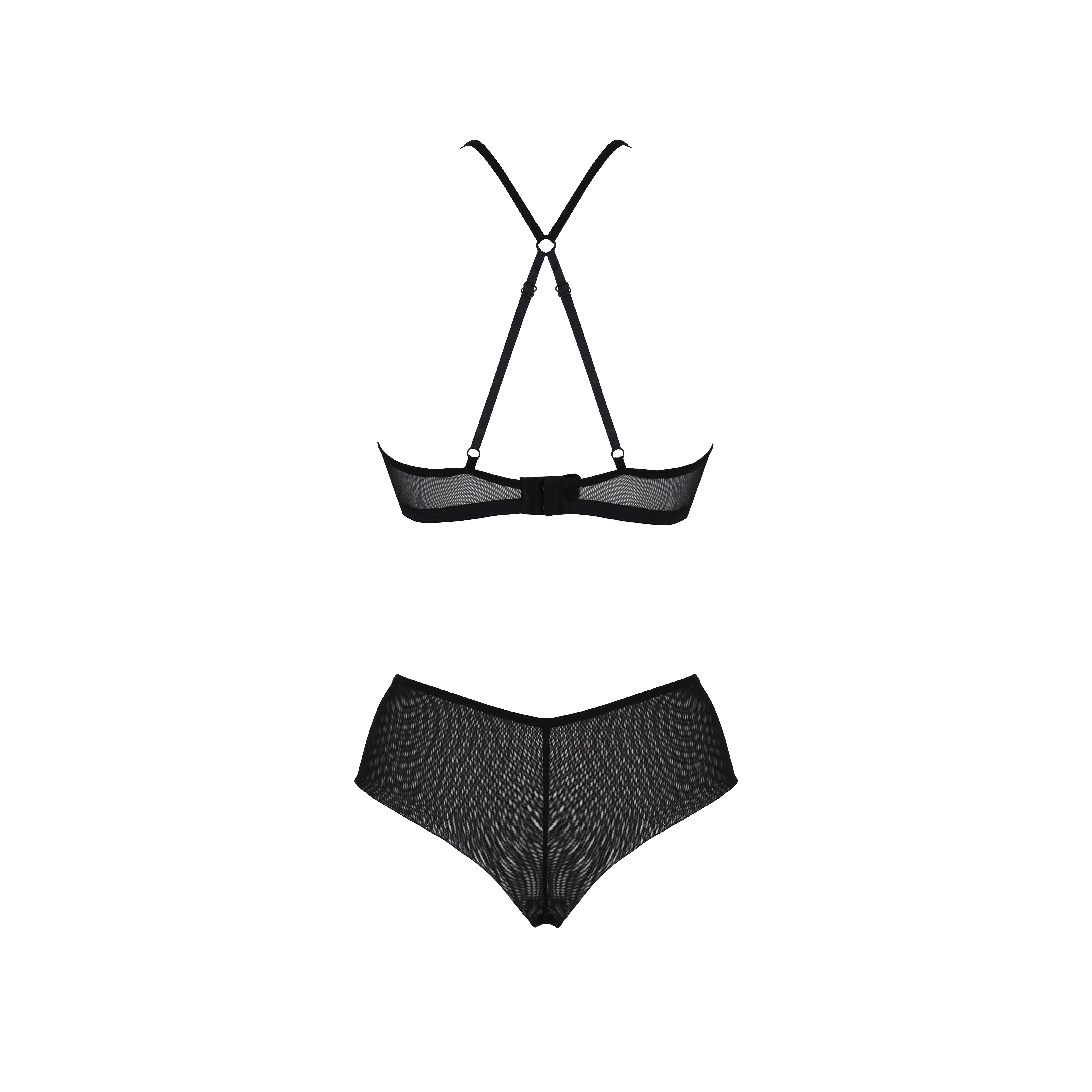 D'une coupe sensuelle et originale, cette parure se distingue par sa dentelle française extrêmement sexy, qui lui confère une touche délicate et sophistiquée.