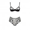 Le soutien-gorge, doté d'armatures renforcées et de découpes stratégiques, assure un maintien idéal, soulignant vos courbes avec sophistication. Le string, en tulle délicat avec un motif romantique en forme de cœur, ajoute une touche irrésistible à l'ensemble.