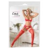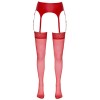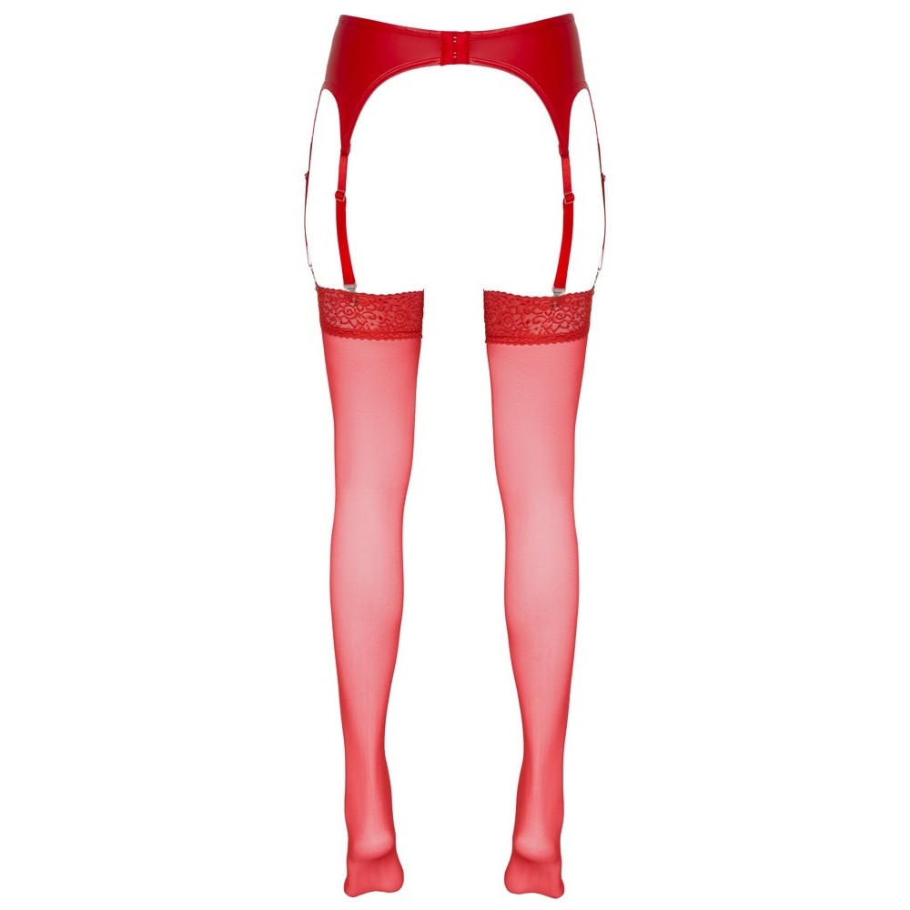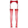 Calze autoreggenti morbide e vellutate che devono essere fissate a un reggicalze. Sono di un rosso molto accattivante e hanno una parte superiore larga 7 cm. 20 denari. Certificazione Oeko-Tex.