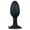 Plug anale nero con una sfera rotante e stimolante all'interno, punta arrotondata e ventosa forte per un utilizzo sicuro e confortevole.