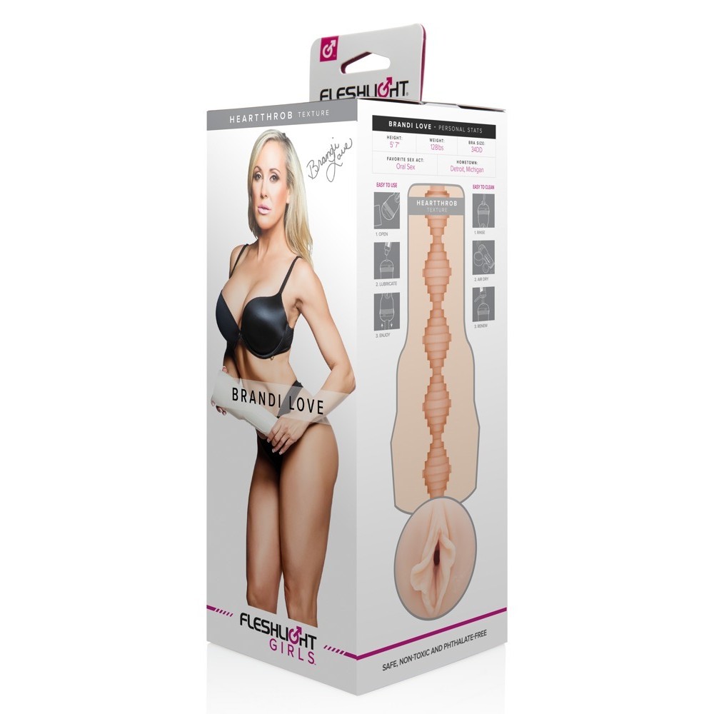 Questo masturbatore color pelle, presentato in un'elegante confezione bianco perla, è una replica realistica della vagina di Brandi Love, con la firma dell'attrice sul prodotto. All'interno, presenta un tunnel del piacere a spirale con innumerevoli punti stimolanti per sensazioni intense e realistiche.