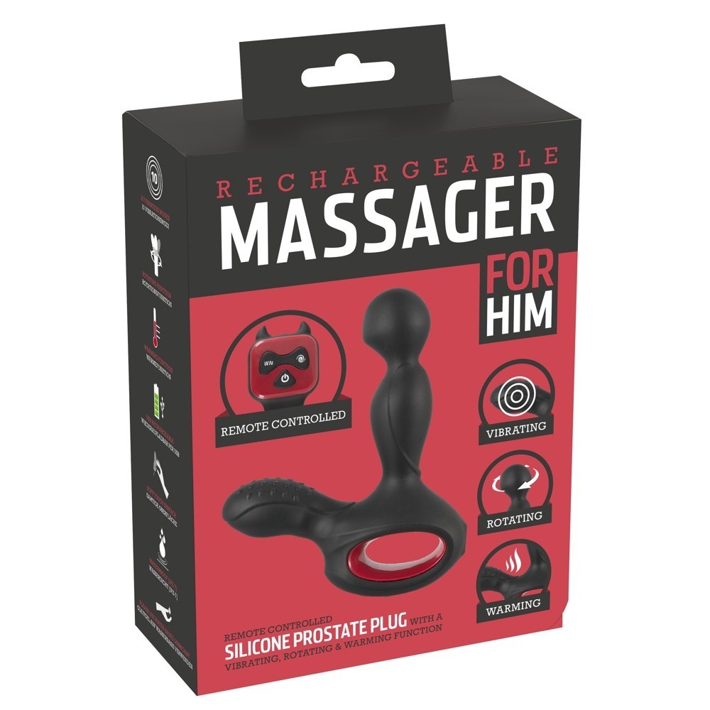 Vibratore prostatico ricaricabile con stimolatore perineale puntinato e anello di ritrazione integrato. L'asta e la punta bulbose offrono una stimolazione intensa e un'eccitante sensazione di pienezza. Offre 10 modalità di vibrazione e 3 livelli di rotazione, che possono essere controllati separatamente. Lo stimolatore perineale ha anche una piacevole funzione di riscaldamento per un'esperienza più coinvolgente. Ideale per una stimolazione profonda dell'ano e del perineo. Include telecomando per un facile utilizzo e cavo USB per la ricarica. Impermeabile.