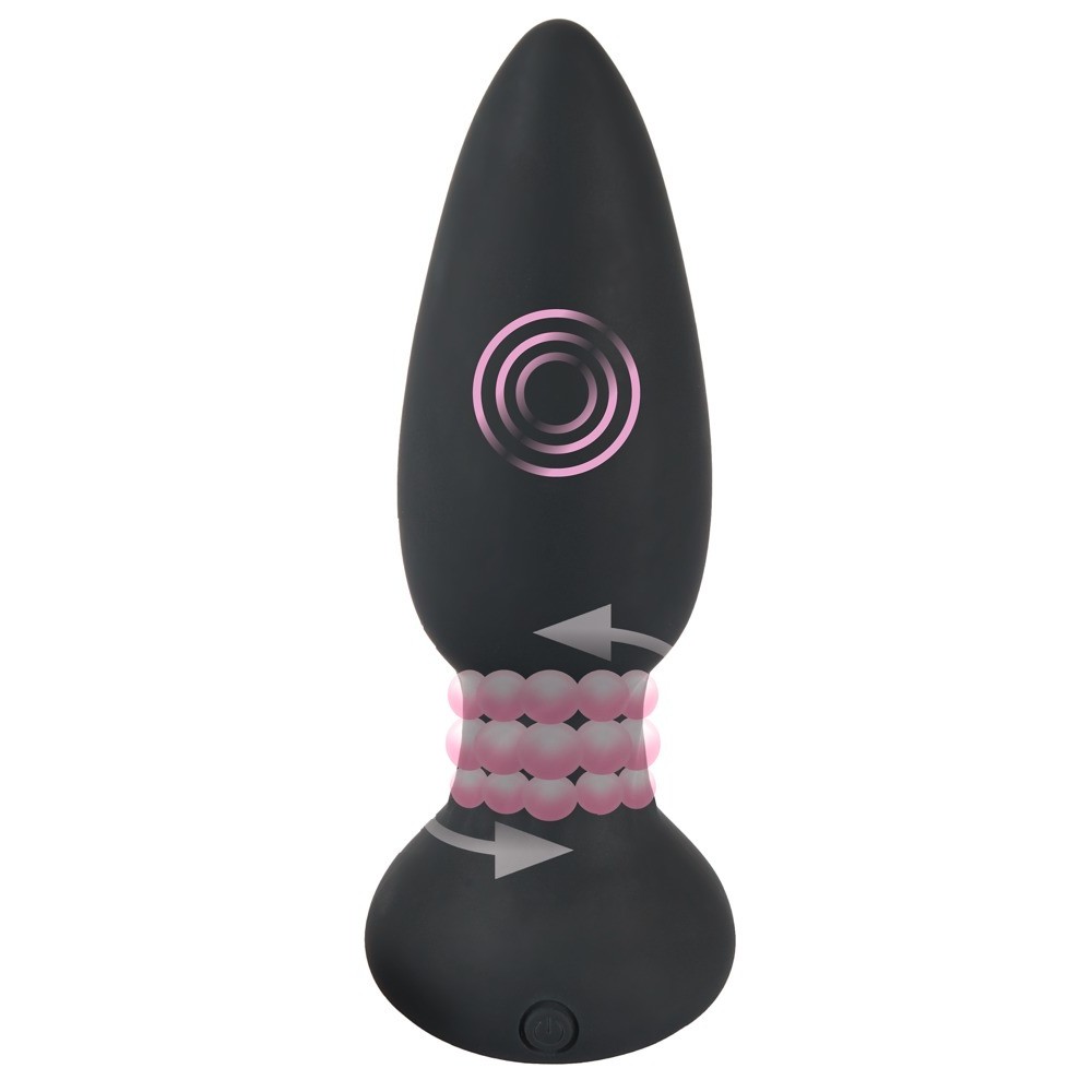 Questo plug anale offre una stimolazione intensa grazie alle sue 7 modalità di rotazione. Può essere controllato tramite telecomando, rendendolo perfetto per eccitanti giochi di coppia o per un intenso divertimento da soli. Le numerose piccole sfere rotanti sull'asse creano una stimolazione profonda e incredibilmente piacevole. La base sicura impedisce al plug di scivolare troppo all'interno. È impermeabile, consentendo momenti caldi nella vasca da bagno o nella doccia. Include cavo USB e 1 batteria per il telecomando (1 x 23A).