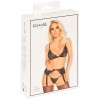 Reggiseno morbido, reggicalze e perizoma in un set da baciare completamente realizzato in fine pizzo nero con dettagli color oro. Morbido ed elastico per il massimo comfort. Il reggiseno e il reggicalze sono decorati con fiocchi e pietre scintillanti sul davanti e hanno una chiusura a gancetto sulla schiena. Le spalline e le bretelle larghe sono regolabili. Il piccolo perizoma in pizzo seduce con due strette fasce elastiche che si uniscono all'inguine.
