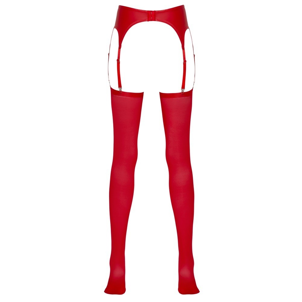Un classico reggicalze realizzato in un bellissimo materiale dall'aspetto opaco. Con parti metalliche color argento e 3 bretelle per lato. Le calze rosse abbinate sono incluse. Un vero must per le seduttrici. Può essere indossato con vari abiti. Con bretelle regolabili.