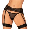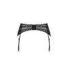 Reggicalze nero Medilla di Obsessive, in delicato tulle elasticizzato e pizzo a ciglia sottili. Comoda vestibilità con stecche modellanti verticali, chiusura con gancio regolabile sul retro e reggicalze regolabili.