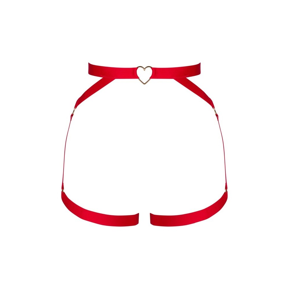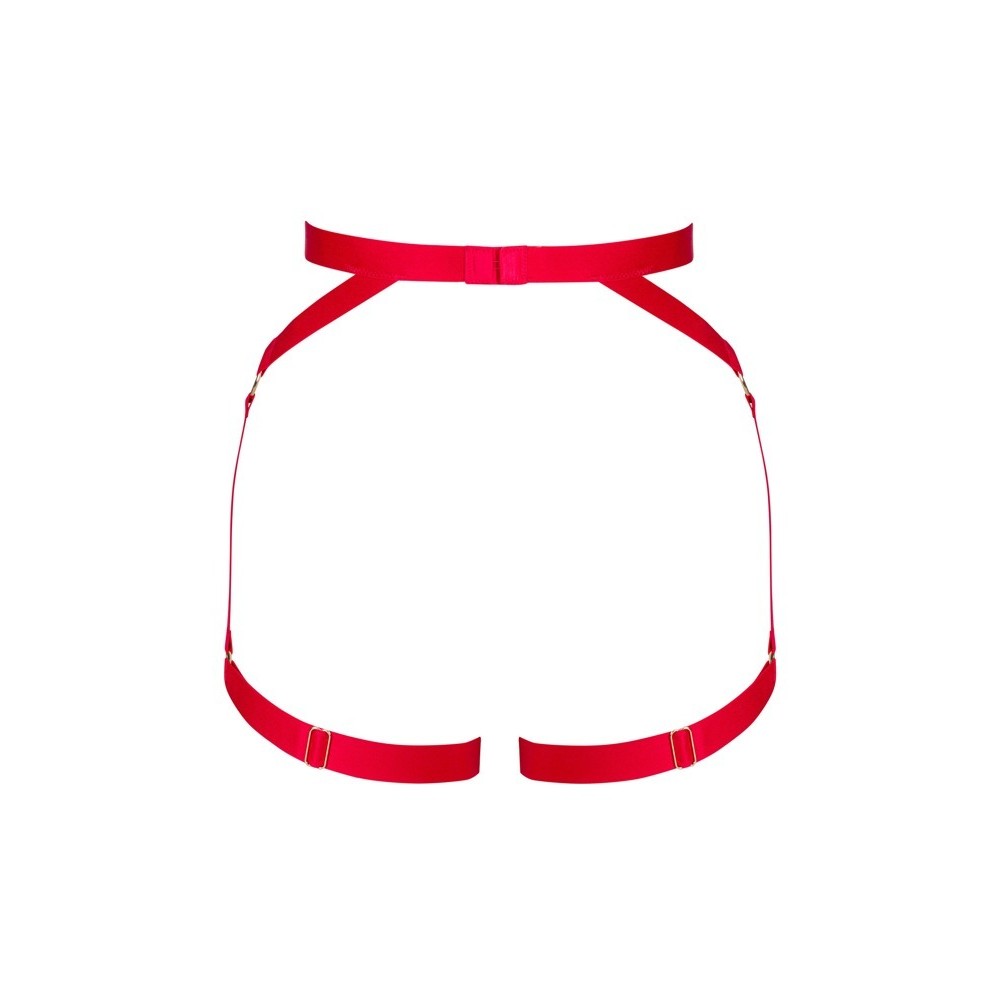 Il reggicalze rosso Elianes di Obsessive è composto da larghe e morbide fasce elastiche, completate da dettagli con anelli dorati. Il reggicalze con giarrettiere laterali e fasce per le cosce valorizza elegantemente le curve della zona centrale. Presenta una chiusura a gancio regolabile sul retro e un cuore decorativo in gioielleria sul davanti come maglia centrale. Anche le fasce per le cosce sono regolabili per una vestibilità perfetta.