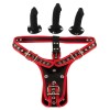 L'imbracatura strap-on di Bad Kitty presenta un elegante design in pelle e include tre dildo in silicone di diverse dimensioni, che possono essere fissati nella parte anteriore o interna tramite bottoni a pressione. Questa versatilità consente di alternare facilmente il dare e il ricevere piacere.