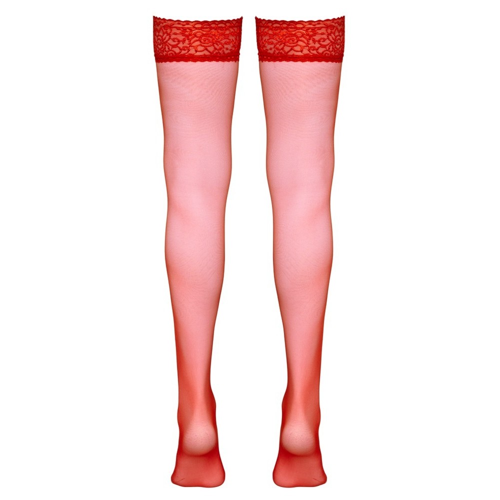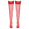 Calze autoreggenti con parte superiore in pizzo di 7 cm, in rosso intenso, ideali per mettere in risalto le tue gambe con un tocco seducente. 17 denari, certificazione Oeko-Tex.