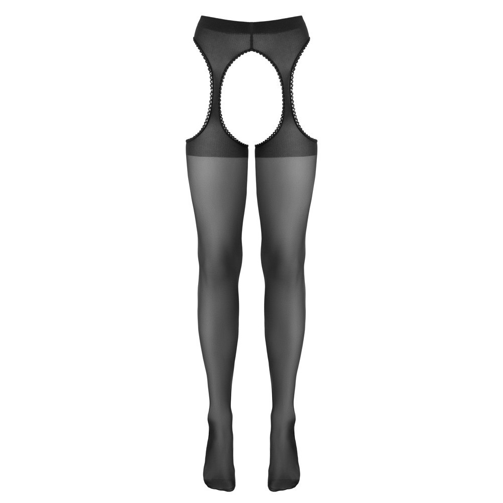 Collant neri Cottelli LEGWARE con effetto giarrettiera, cucitura decorativa sul retro, apertura sul cavallo e ritagli laterali delicatamente rifiniti in pizzo. Puntale preformato. Peso del filato 20 den. Certificazione Oeko-Tex.