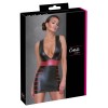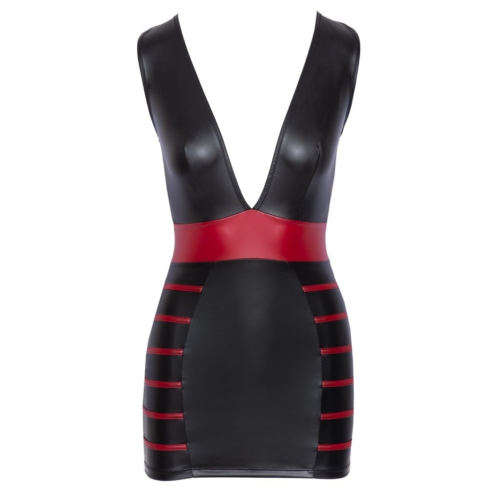 Abito corto e aderente di Cottelli PARTY in nero opaco, con striscia rossa in vita e strisce laterali sulla gonna che accentuano le curve. Scollo molto profondo e tessuto morbido ed elastico per una vestibilità comoda e seducente.