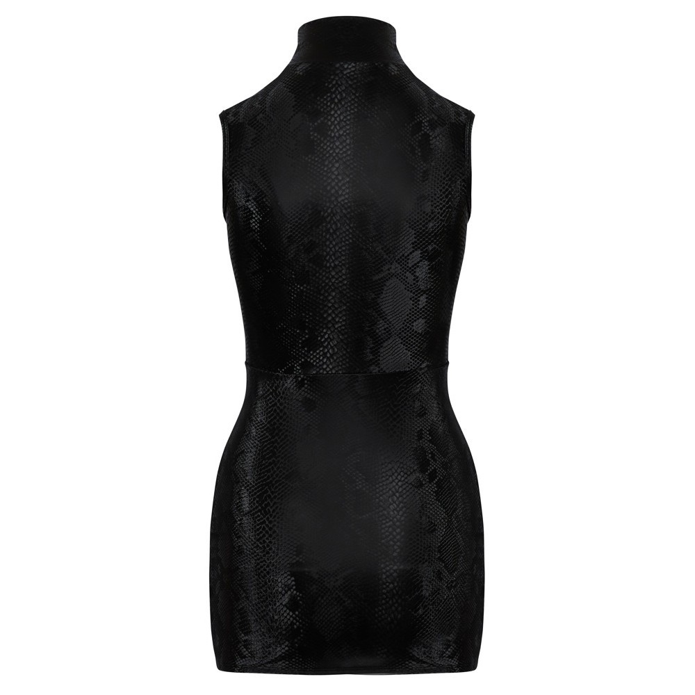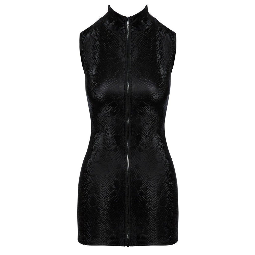 Abito corto, aderente e senza maniche di Cottelli PARTY, con elegante effetto pelle di serpente dalla finitura opaca e leggermente luccicante. Chiusura frontale con cerniera su tutta la lunghezza, dal collo alto all'orlo, per un tocco audace e versatile. Tessuto estremamente elastico che garantisce una vestibilità aderente, comoda e perfettamente adattata alle curve.