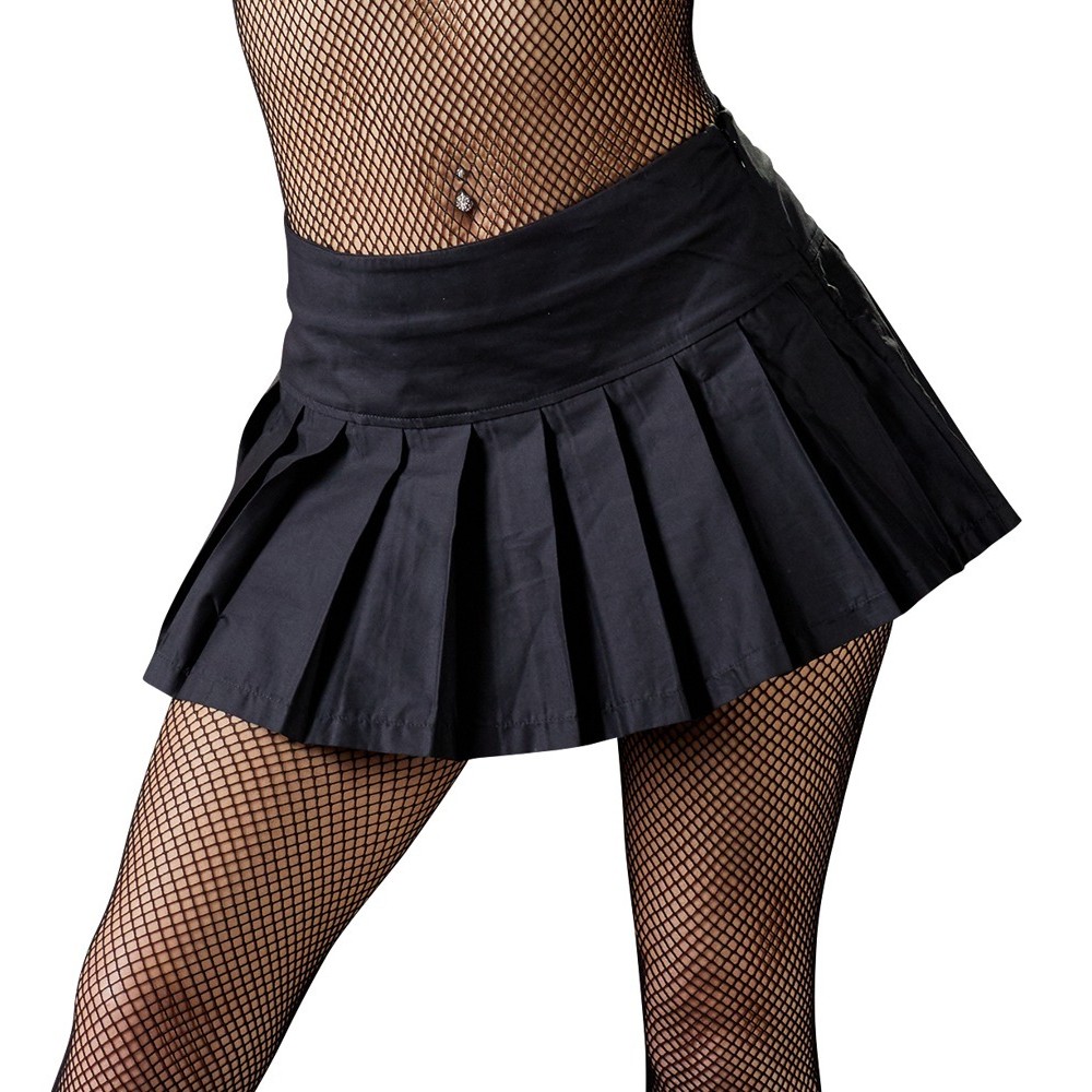 Minigonna nera plissettata con piccola chiusura lampo laterale.