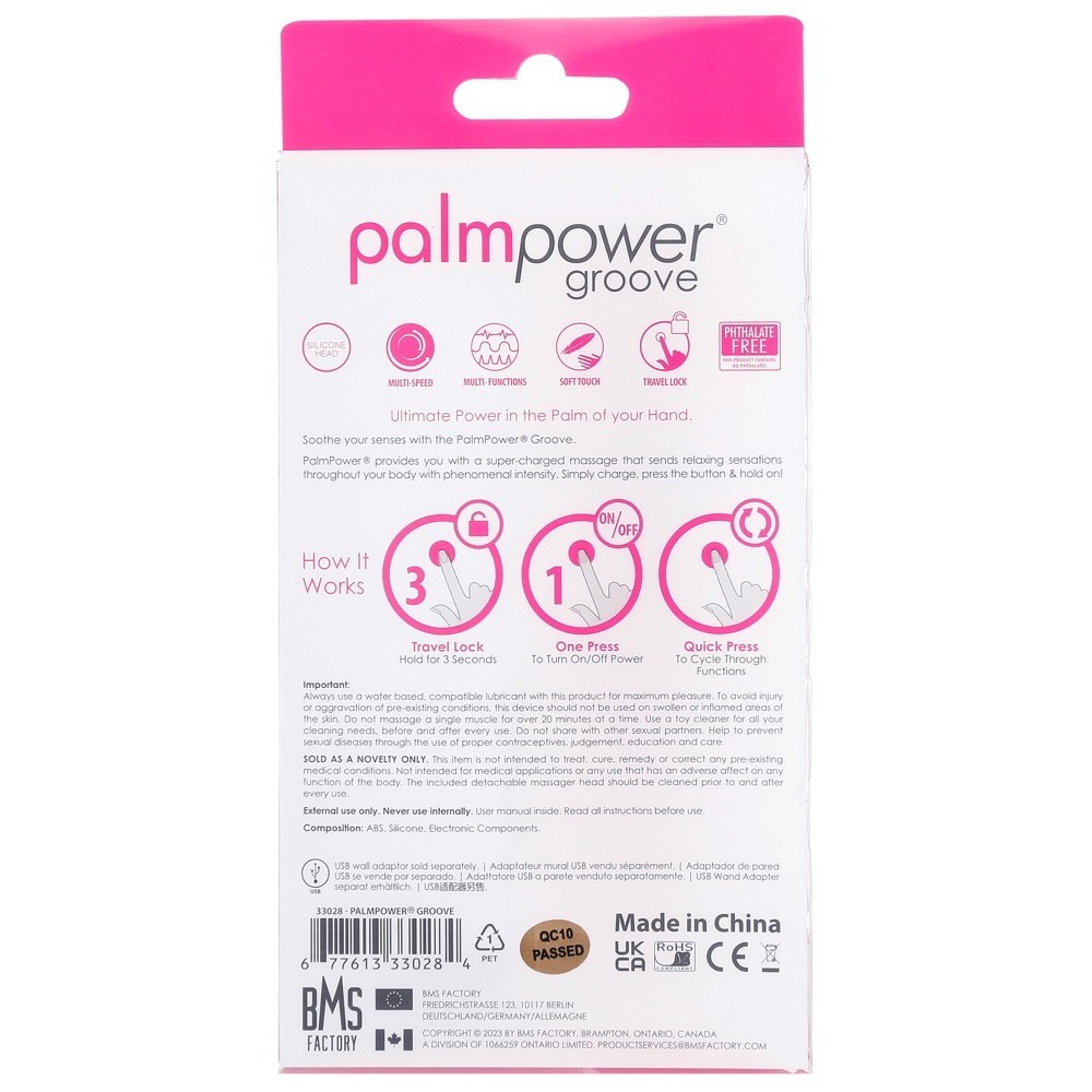 Il massaggiatore wand compatto con scanalature di palmpower® è ideale sia per massaggi su tutto il corpo che per la stimolazione mirata delle zone erogene, a casa, in viaggio, da soli o in compagnia.
