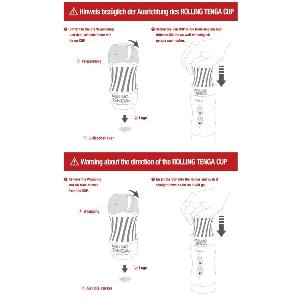 Ovviamente, la coppa Rolling Tenga può essere utilizzata senza il Vacuum Gyro Roller. Il masturbatore monouso è pronto per l'uso immediato. Dopo l'inserimento senza problemi, l'anello lubrificante fornisce al pene un'abbondante quantità di gel, in modo che non sia necessario un lubrificante aggiuntivo. Per l'effetto di aspirazione manuale, rimuovere l'adesivo dall'apertura di aspirazione all'estremità della coppa e chiuderla o aprirla con il dito (come desiderato).