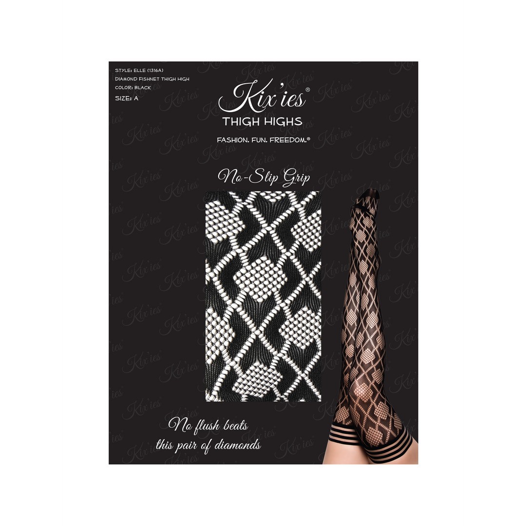 Calze da reggicalze a rete diamantata di Kix'ies. Ravviva qualsiasi look con questo design divertente e accattivante. Le calze autoreggenti Kix'ies sono progettate per essere indossate comodamente tutto il giorno, grazie alla loro aderenza antiscivolo.