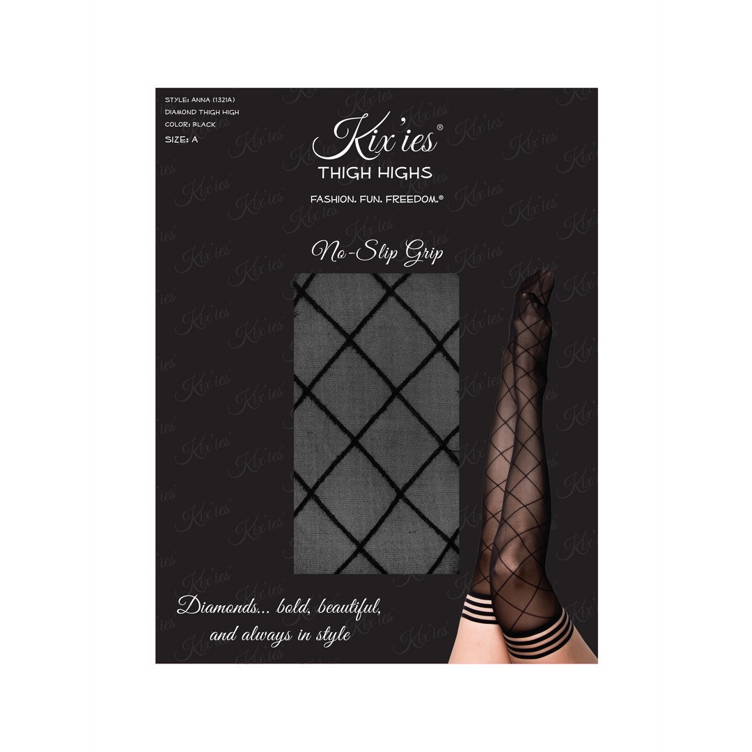 Kix'ies è audace, bella e sempre alla moda, con un motivo a rombi trasparente. Le calze autoreggenti Kix'ies sono un accessorio essenziale nel guardaroba, ideali dal giorno alla sera, e il modo perfetto per dare un tocco speciale a qualsiasi look. Progettate per essere indossate comodamente tutto il giorno, sono dotate di una fascia antiscivolo che le mantiene sempre al loro posto.