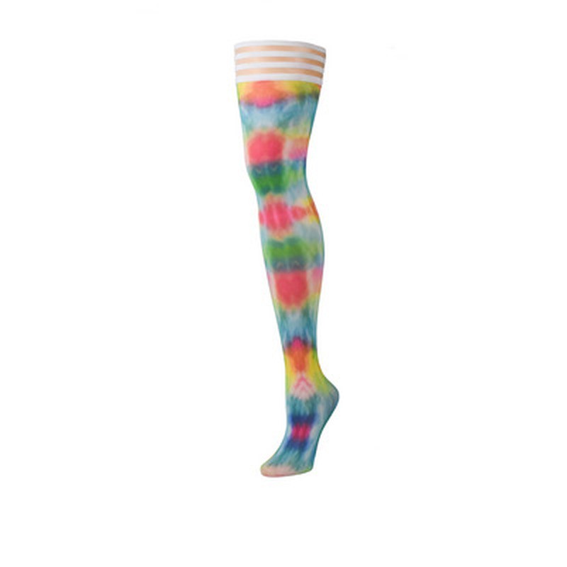 Calze da reggicalze autoreggenti Kix'ies Gilly tie-dye multicolori, antiscivolo e ricche di stile per look audaci e festosi.